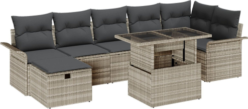 vidaXL Zestaw Sofa Ogrodowe 8 Elementów z Poduszkami Beżowy Polirattan