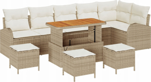 Vidaxl Zestaw Sofy Ogrodowej 10 Elementów z Poduszkami Beżowy Polirattan Akacja