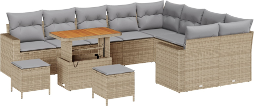 vidaXL Zestaw Sofy Ogrodowej 12-elementowy z Poduszkami Beżowy Polirattan Akacja