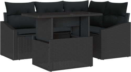 vidaXL Zestaw Sofy Ogrodowej 5 Części z Poduszkami Czarny Polirattan
