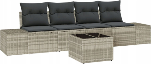 vidaXL Zestaw sofy ogrodowej 5-elementowy z poduszkami Jasnoszary Polirattan
