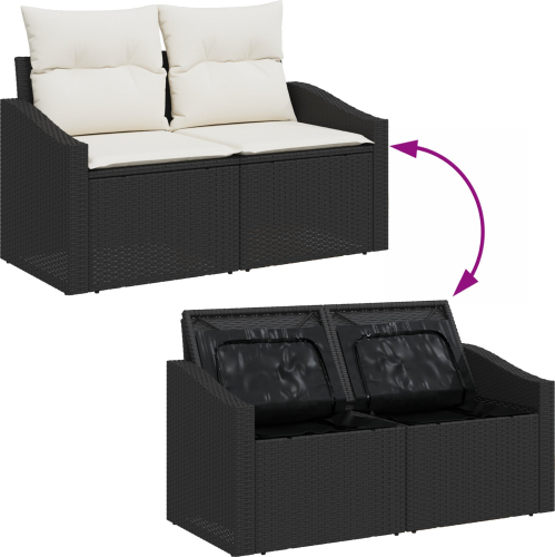 vidaXL Zestaw Sofy Ogrodowej 6 Części z Poduszkami Czarne Polirattan