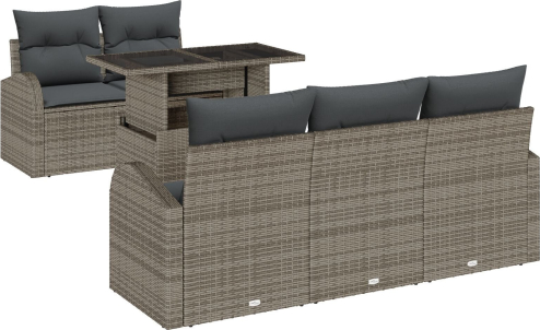 vidaXL Zestaw sofy ogrodowej 6 części z poduszkami Szary Polirattan