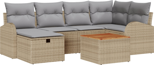 vidaXL Zestaw Sofy Ogrodowej 7 Części z Poduszkami Beżowy Polirattan