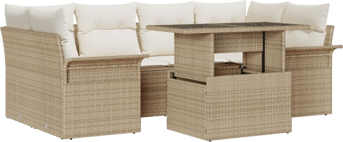 vidaXL Zestaw Sofy Ogrodowej 7 Części z Poduszkami Beżowy Rattan