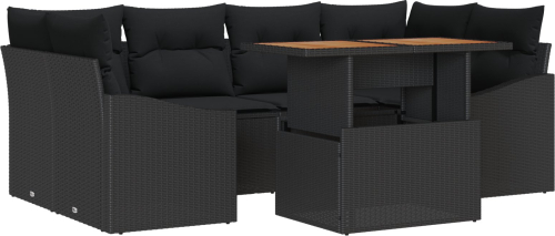 vidaXL Zestaw Sofy Ogrodowej 7 części z Poduszkami Czarny Polirattan