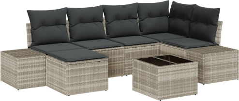Vidaxl Zestaw sofy ogrodowej 7-elementowy z poduszkami szary polirattan