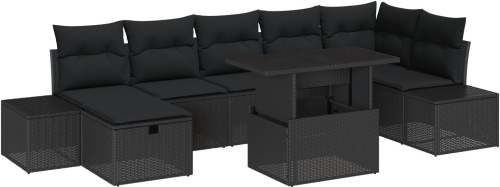 vidaXL Zestaw Sofy Ogrodowej 8 Elementów z Poduszkami Czarny Polirattan