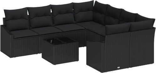vidaXL Zestaw Sofy Ogrodowej 9 Części Czarny Rattan, Poduszki Poliestrowe