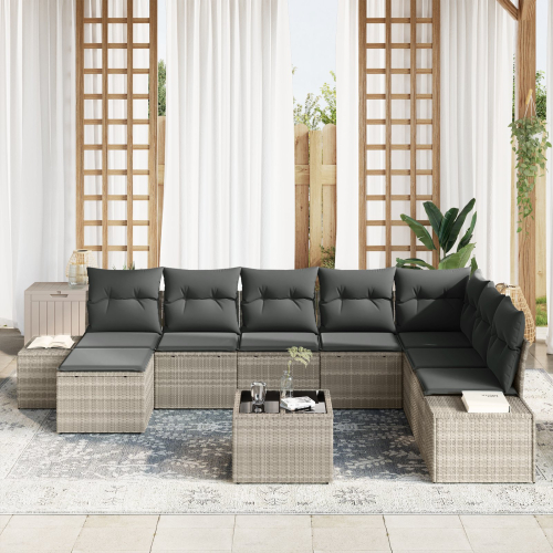 vidaXL Zestaw Sofy Ogrodowej 9 Części z Poduszkami Szary Rattan