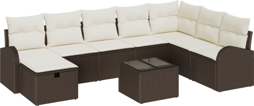 vidaXL Zestaw sofy ogrodowej 9-elementowy z poduszkami Brązowy polirattan