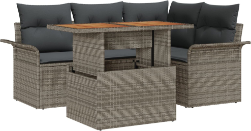 vidaXL Zestaw Sofy Ogrodowej Zestaw 5 Elementów Szary, Brązowy, Czarny