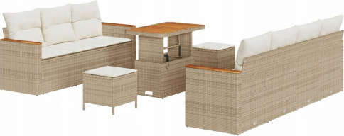 Zestaw 10-częściowy sof ogrodowych vidaXL z poduszkami Beżowy Poli Rattan Akacja