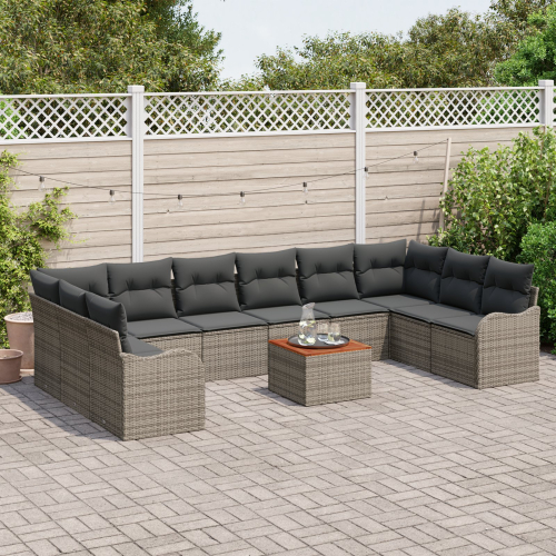 Zestaw 11-Częściowy Sof Ogrodowych vidaXL z Poduszkami Szary Polirattan Akacja