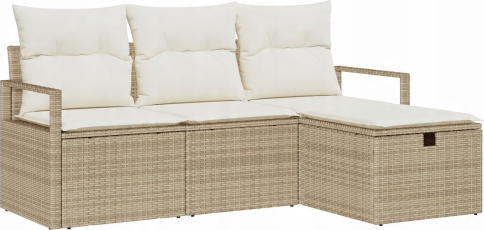 Zestaw 4-częściowy sof ogrodowych vidaXL z poduszkami Beżowy Rattan poliester