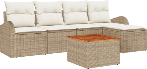 Zestaw 6-częściowy sof ogrodowych vidaXL z poduszkami Beżowy Polirattan Akacja