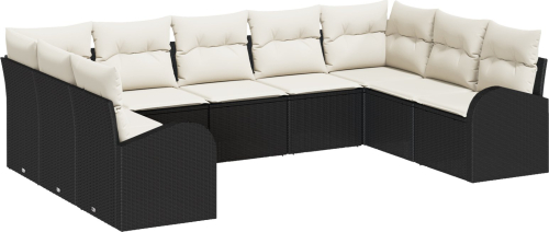 Zestaw 9-częściowy sof ogrodowych vidaXL z poduszkami Czarny Polirattan