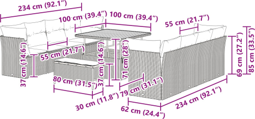 Zestaw ogrodowy vidaXL 11 częściowy z poduszkami czarny polirattan akacja