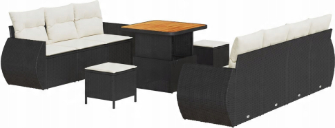 Zestaw sof ogrodowych vidaXL 10-częściowy z poduszkami Czarny polirattan akacja