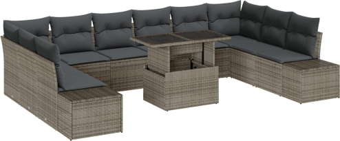 Zestaw sof ogrodowych vidaXL 11 części Szary Rattan, Poduszki z poliestru