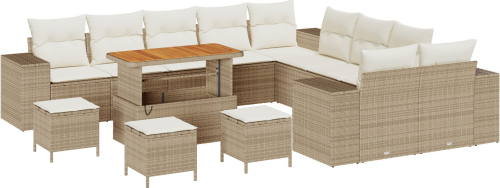 Zestaw sof ogrodowych vidaXL 14 elementów z poduszkami beżowy polirattan akacja, Zestaw do ogrodu vidaXL 4 elementy z poduszkami beżowy polirattan akacja