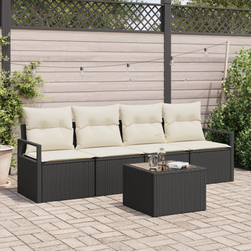 Zestaw sof ogrodowych vidaXL 5-częściowy z poduszkami czarny polirattan