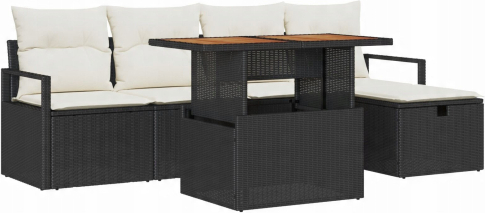 Zestaw Sof Ogrodowych vidaXL 6 Części z Poduszkami Czarny Polirattan
