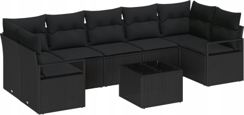 Zestaw sof ogrodowych vidaXL 8 części z poduszkami czarny polirattan