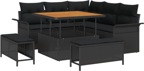 Zestaw sof ogrodowych vidaXL 8 części z poduszkami Czarny polirattan akacja