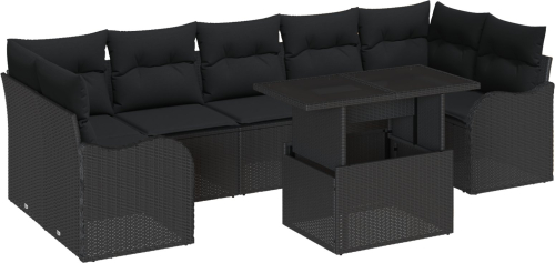 Zestaw sof ogrodowych vidaXL 8-częściowy z poduszkami Czarny Polirattan