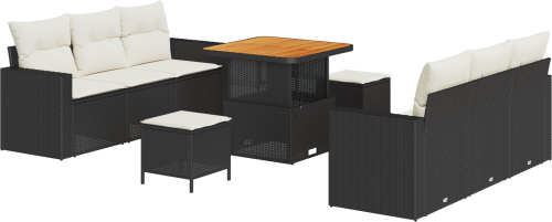 Zestaw Sof Ogrodowych vidaXL 9-częściowy z Poduszkami Czarny Polirattan Akacja