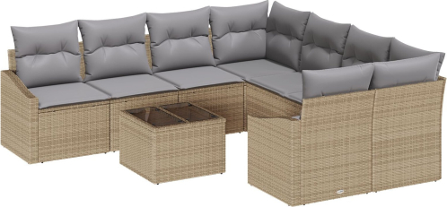 Zestaw sof ogrodowych vidaXL Zestaw 9 Beżowy, Szary Rattan, Poliester