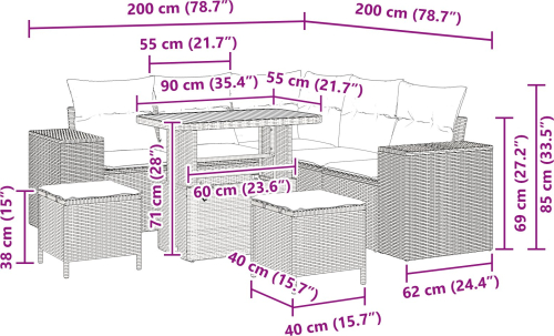 Zestaw Sofowy vidaXL 8 Części z Poduszkami Czarny Polirattan Akacja