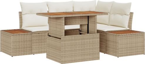 Zestaw sofy do ogrodu vidaXL Zestaw 5-częściowy Beżowy Rattan