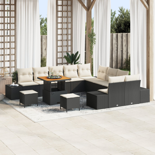 Zestaw sofy ogrodowej vidaXL 13 elementów z poduszkami czarny polirattan akacja