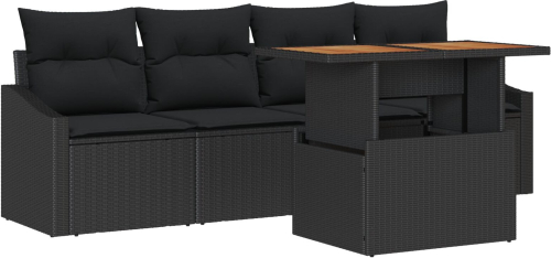 Zestaw sofy ogrodowej vidaXL 5-częściowy Czarny Rattan