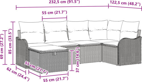 Zestaw sofy ogrodowej vidaXL 6 elementów z poduszkami Czarny Polirattan