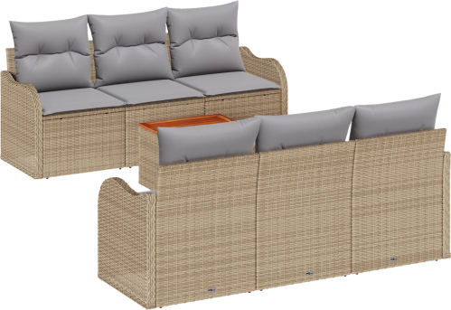 Zestaw Sofy Ogrodowej vidaXL 7 Części z Poduszkami Beżowy Polirattan Akacja