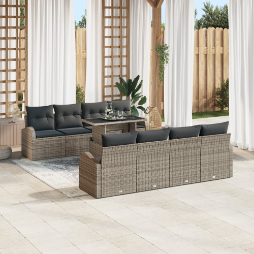 Zestaw Sofy Ogrodowej vidaXL 9 Części z Poduszkami Szary Rattan PE