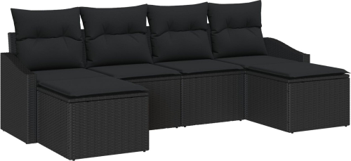 Zestaw sofy ogrodowej vidaXL Zestaw 6-elementowy Czarny Polirattan