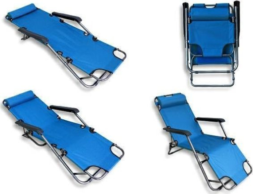 CreativeHome Leżak plażowy ogrodowy składany niebieski