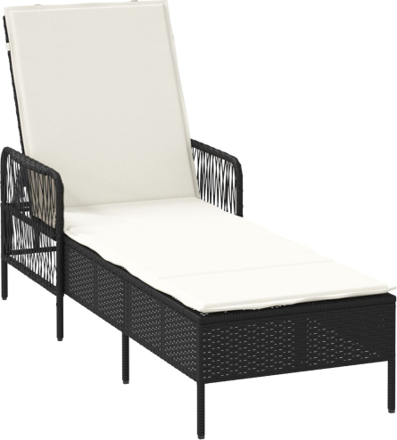 vidaXL Leżak Czarny i kremowy PE Rattan 157 x 55 x 92 cm