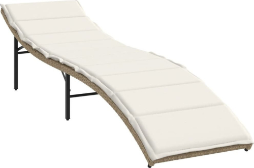 vidaXL Leżak z poduszką, beżowy, 55x199x50 cm, polirattan