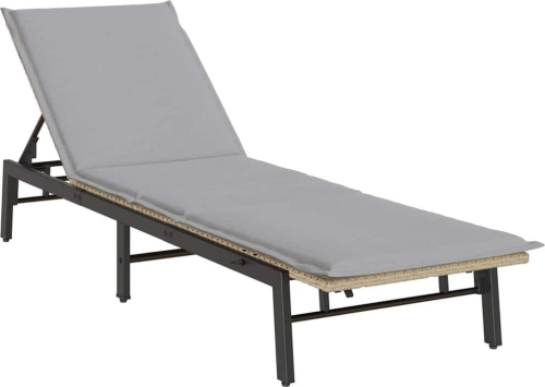 vidaXL Leżak z poduszką, beżowy, polirattan