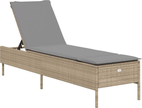 vidaXL Leżak z poduszką, beżowy, polirattan