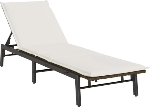 vidaXL Leżak z poduszką, brązowy, polirattan