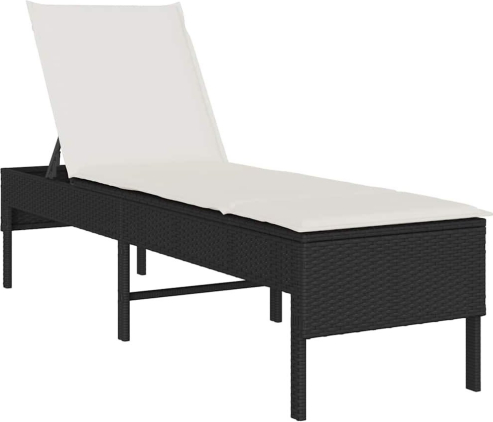 vidaXL Leżak z poduszką Czarny 55x200x44cm polirattan