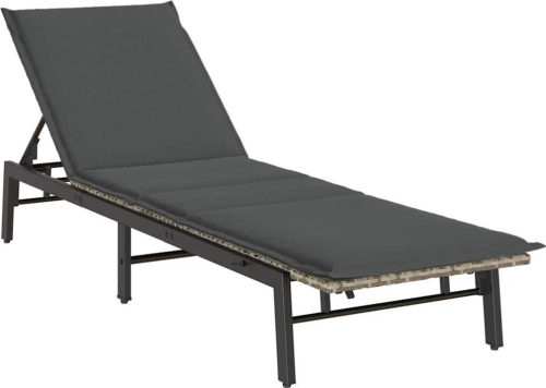 vidaXL Leżak z poduszką, jasnoszary, polirattan