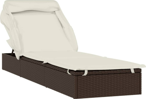 vidaXL Leżak ze składanym dachem, brązowy, 213x63x97 cm, polirattan