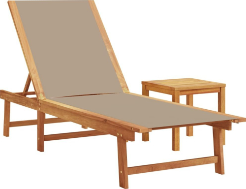 vidaXL Leżak ze stolikiem, taupe, lite drewno akacjowe i textilene